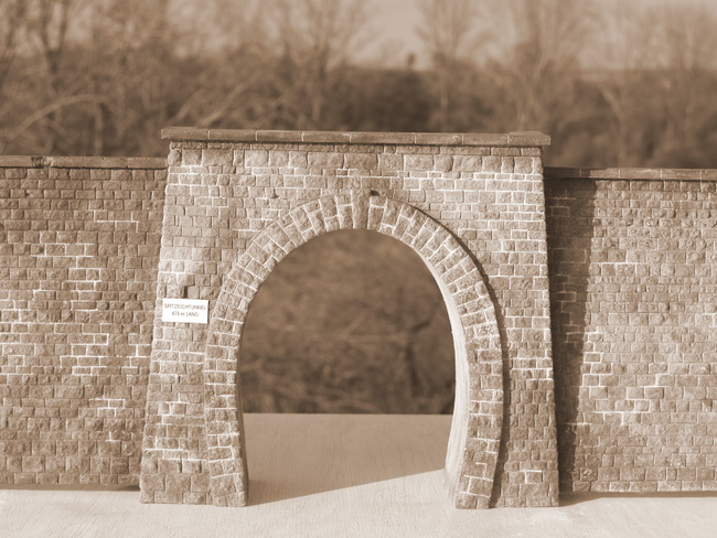 Zwischen den Stationen Landsweiler (bei Lebach) und Eiweiler führt die eingleisige Bahnstrecke durch den 476 m langen Spitzeich Tunnel. Gestalten Sie sich ein Stück Köllertalbahn auf Ihrer Modellbahn mit unserer Nachbildung des Südportals inkl. der Mauerplatten rechts und links. Wie beim Vorbild auch, finden Sie bei unserem Modell eine beschädigte Decksteinplatte auf der linken Mauer!